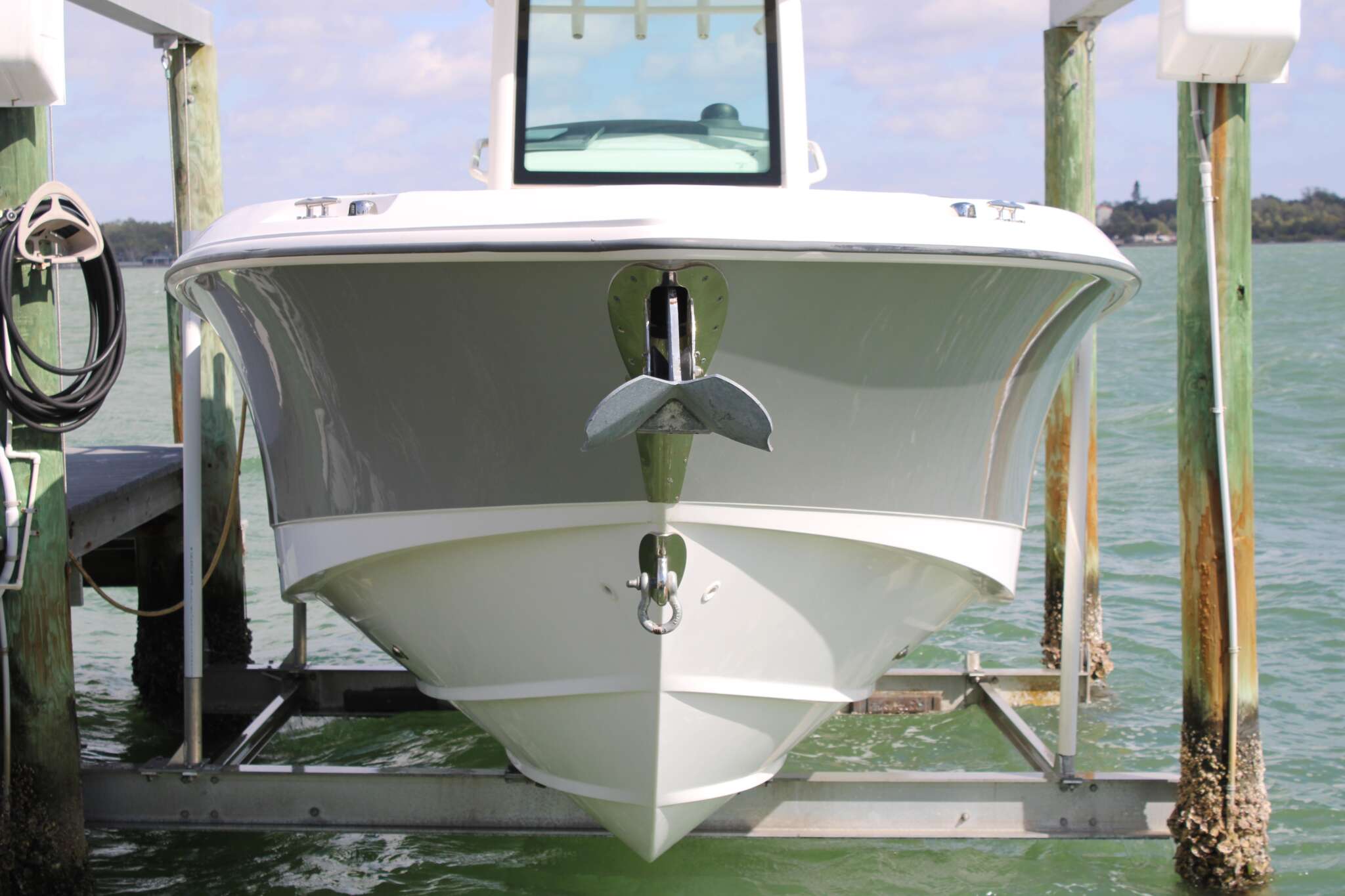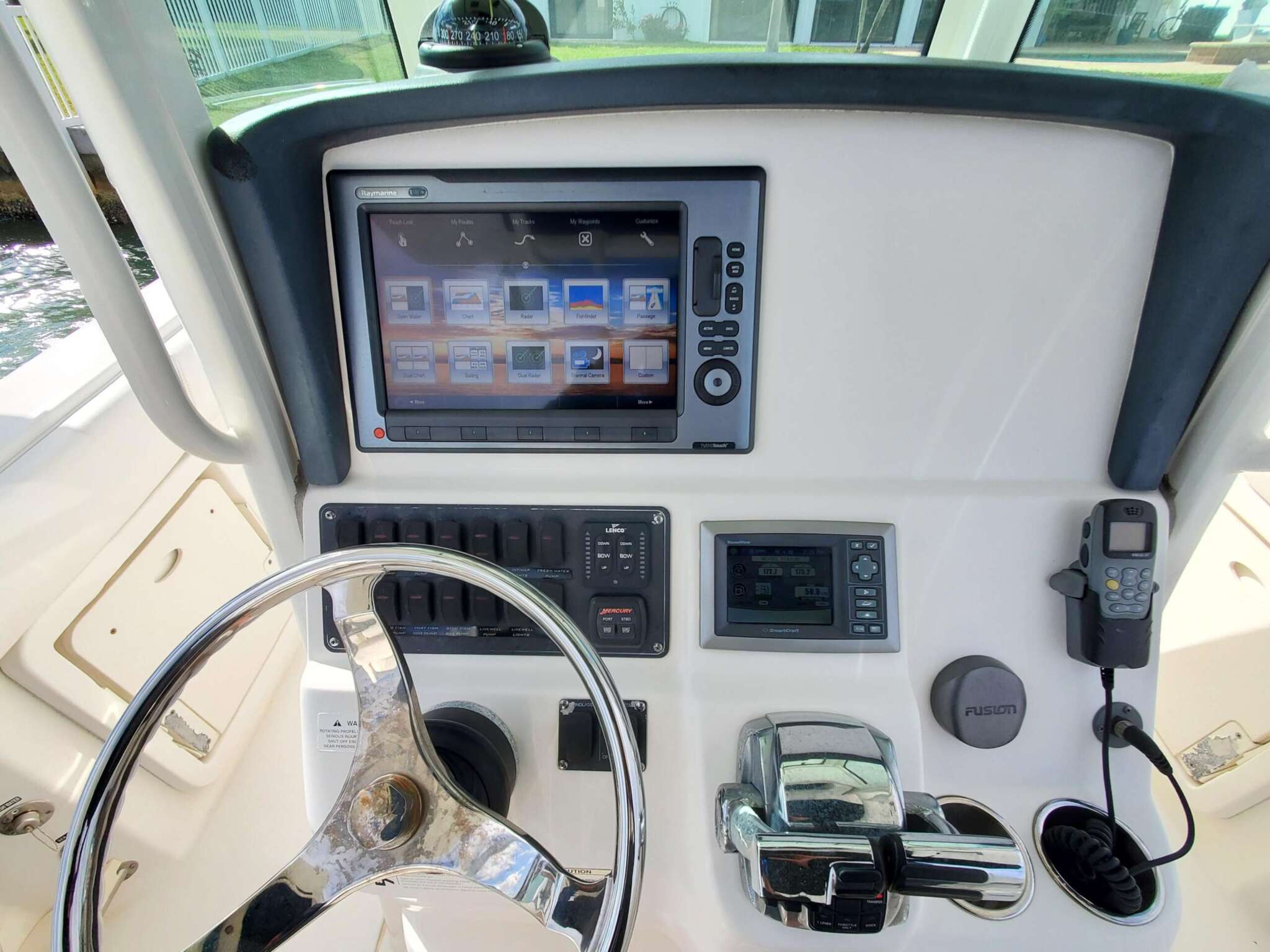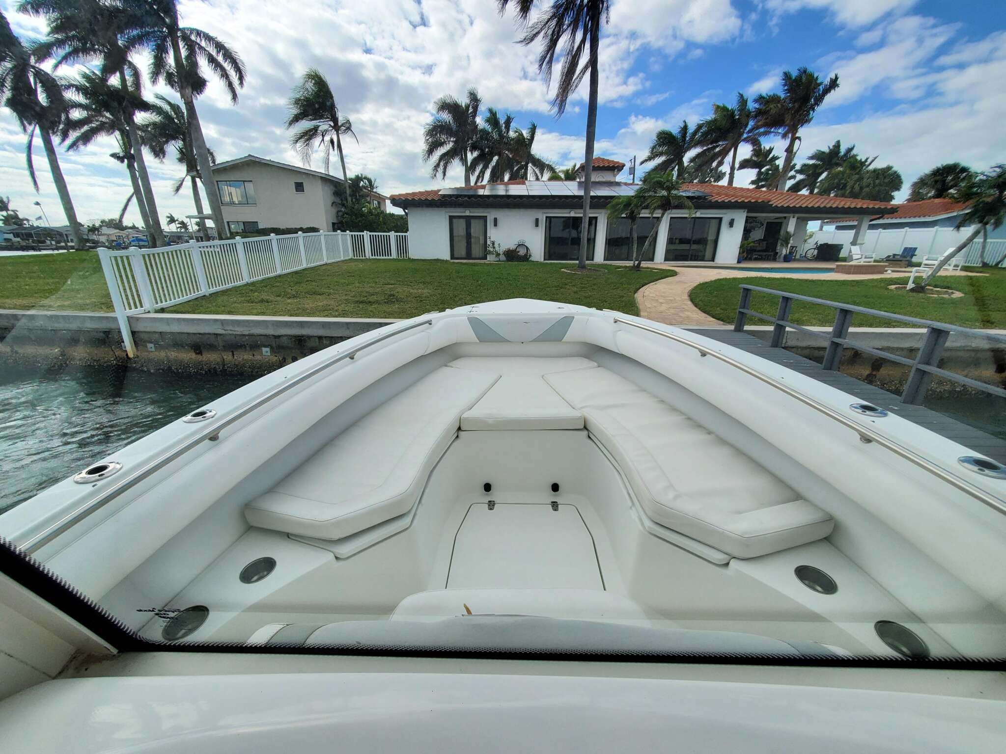The vessel is powered by Twin Mercury Verado 300 hp 4-stroke motors with only 172 hours.  The annual service was completed in the summer of 2022, the seller states the boat will go 50 knots and cruises nicely at 35 knots.  The cowlings were just repainted as they were beginning to show their age.